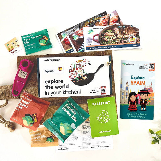 Travel to new destinations in your kitchen with this exclusive bundle featuring our brand new eat2explore cookbook, A Taste of The World: Celebrating Global Flavors, pick your preferred TWO countries, and fun collectibles! Enjoy culinary adventures at home with our award-winning global cooking kits.